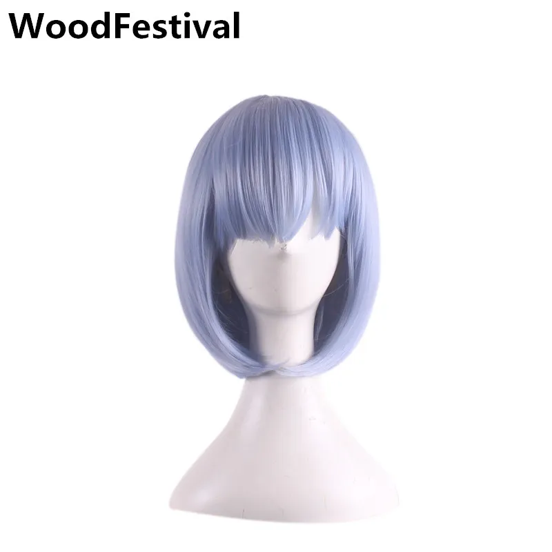 HOT SALE WoodFestival Synthetic Pink Blue Short Wig Cosplay Straight Bob Wigs with bangs