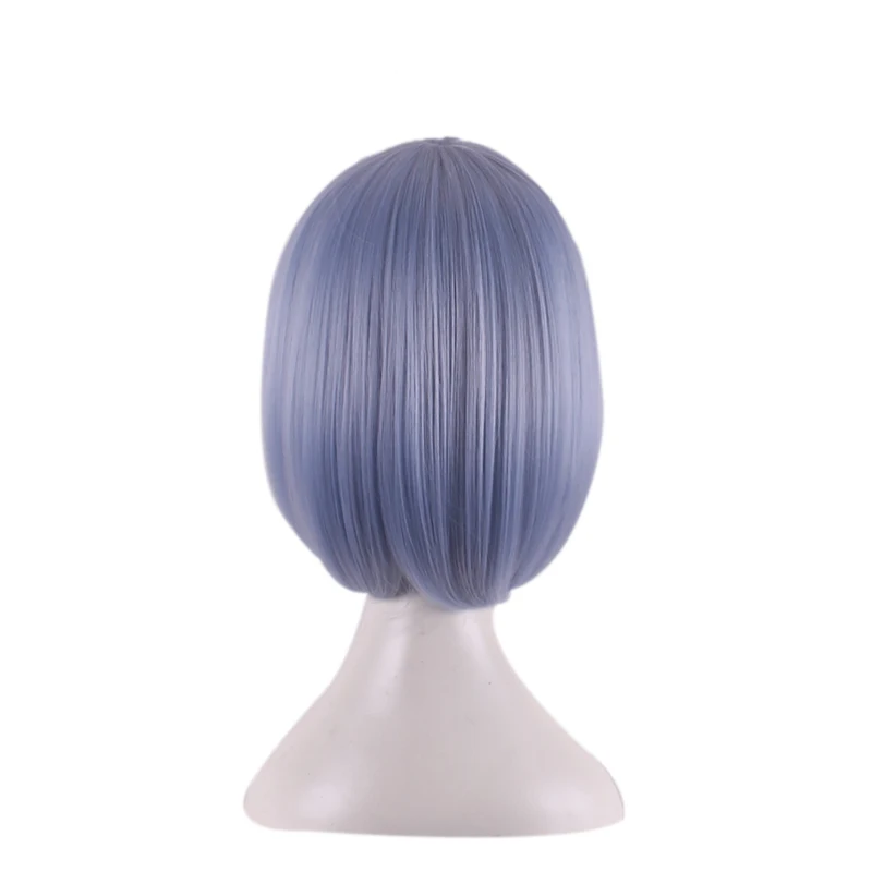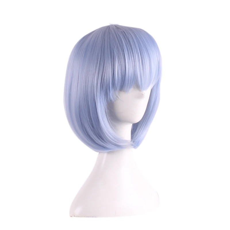 WoodFestival Synthetic Pink Blue Short Wig Cosplay Straight Bob Wigs with bangs