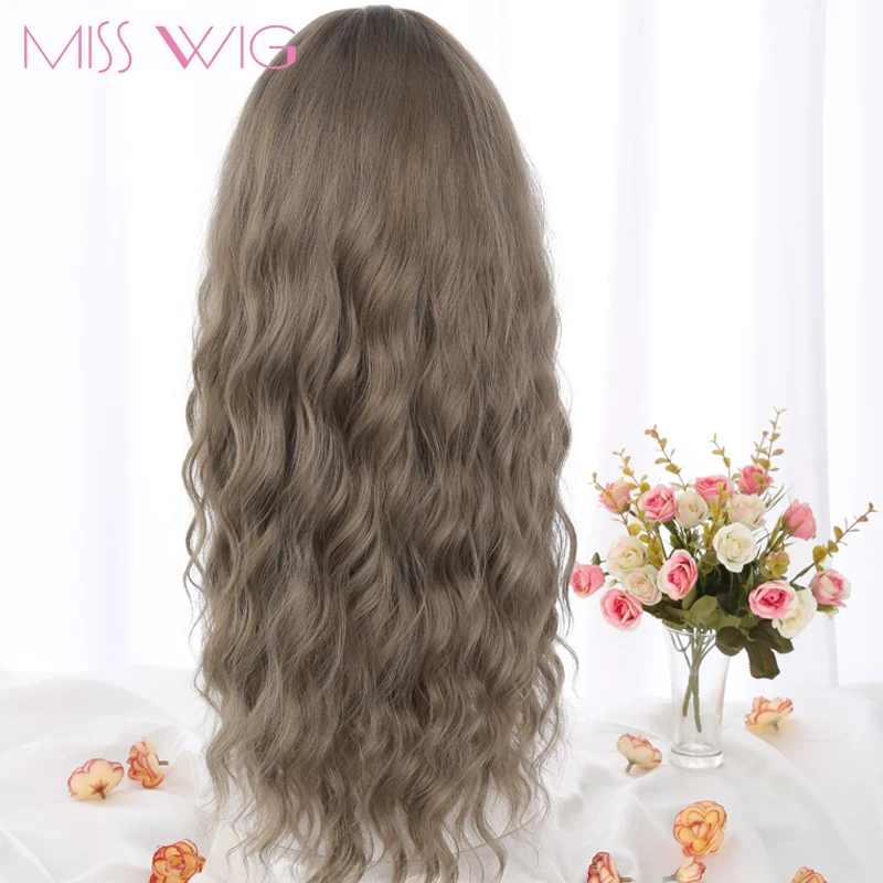 BEST SELLER MISS WIG Long Grey Brown Womens Wigs With Bangs Synthetic Wavy Wigs for Black Women African America