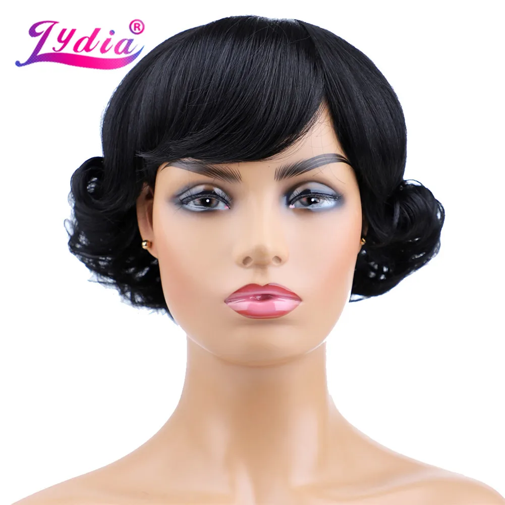 Hot Sale Lydia Synthetic Curly Natural Black Kanekalon Short Wig For African American Russian Women High Tem