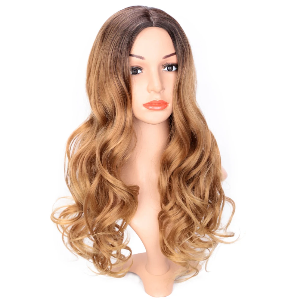 Stamped Glorious 24inch Natural Long Curly Wig Ombre Blonde Heat Resistant Hair Middle Part Synthet