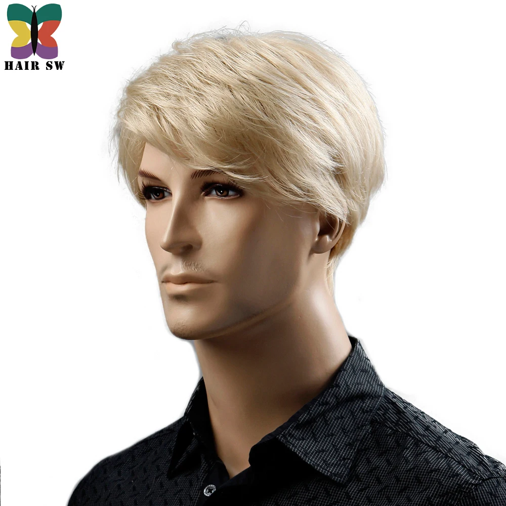 BEST HAIR SW Synthetic 6inch Short Blonde Wig Natural Hair Men Straight hairStyles Heat Resistant Fiber