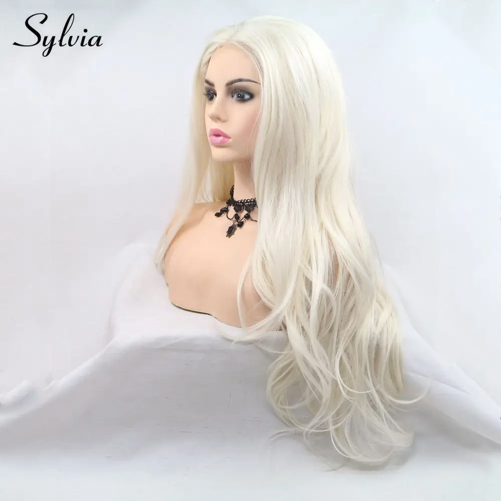 Sylvia Platinum Blonde Hair Machine Made Wigs For Women Middle Part Long Body Wave Synthetic Wigs H