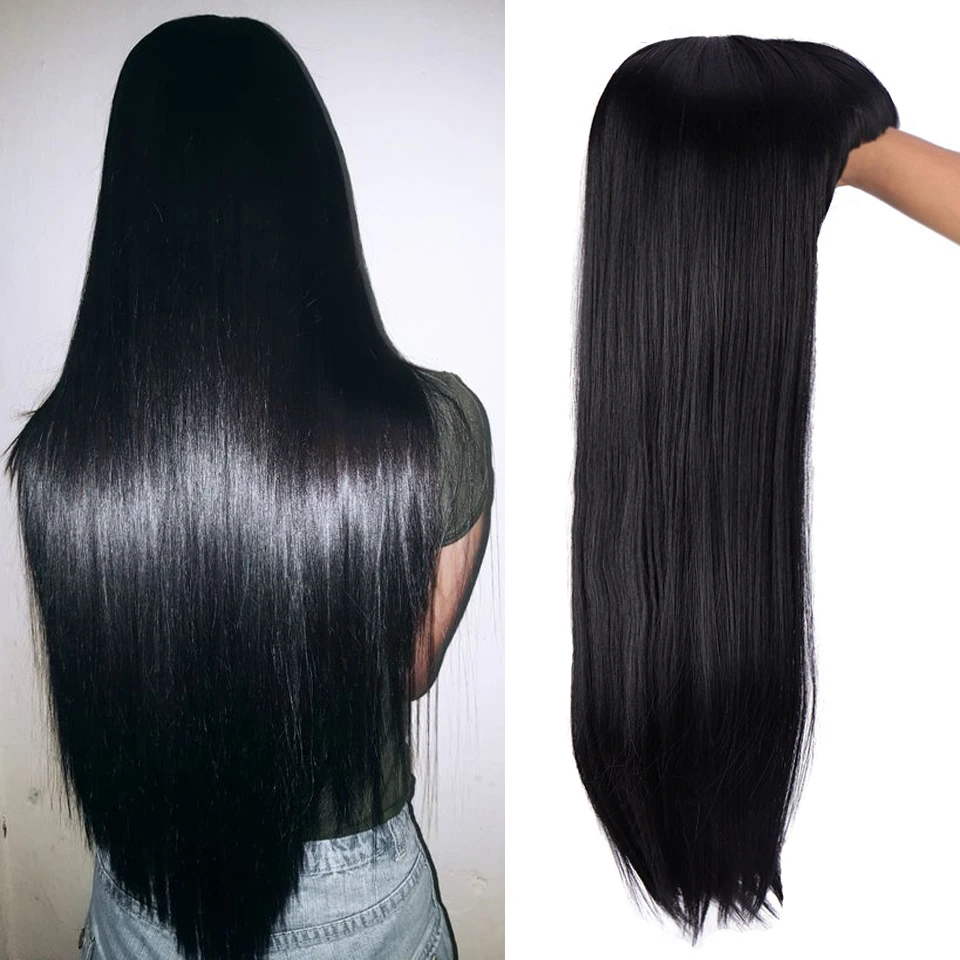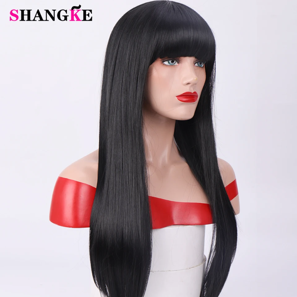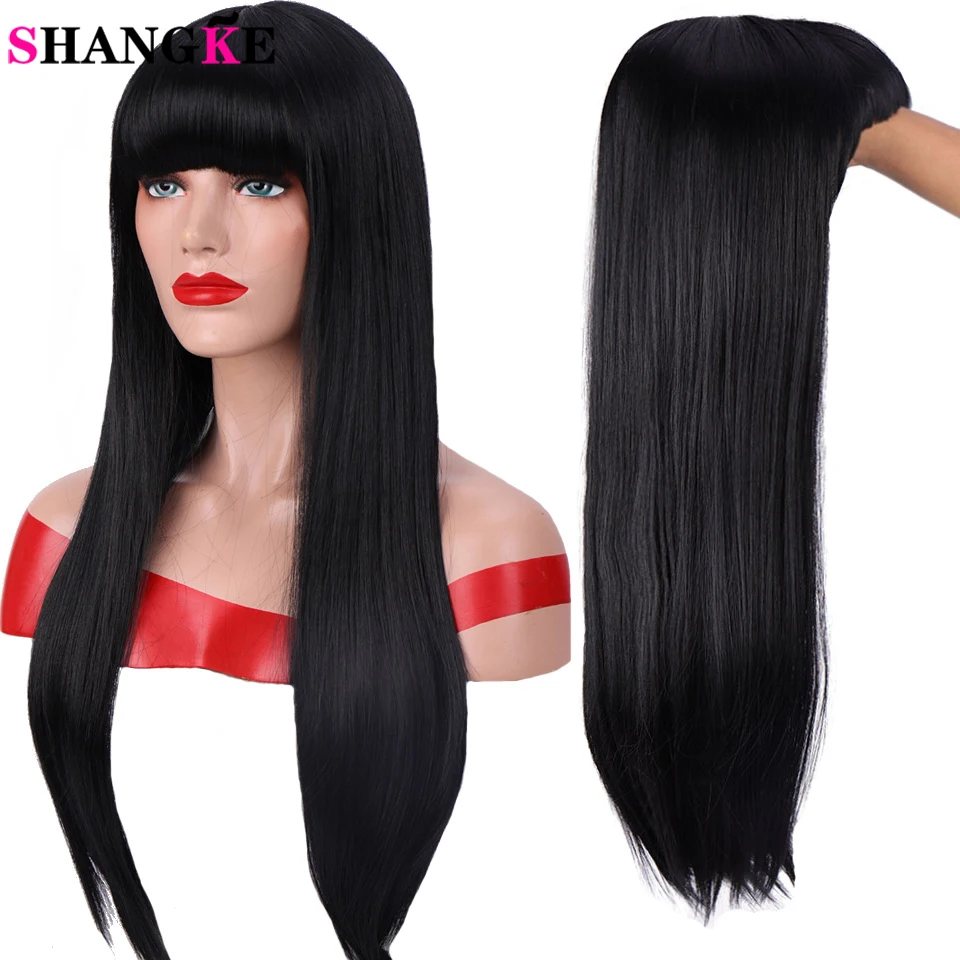 HIGH QUALITY SHANGKE 24 ''Long Straight Black with Bangs Wig Synthetic Hair For Women Heat Resistant Fiber Daily