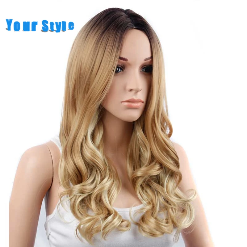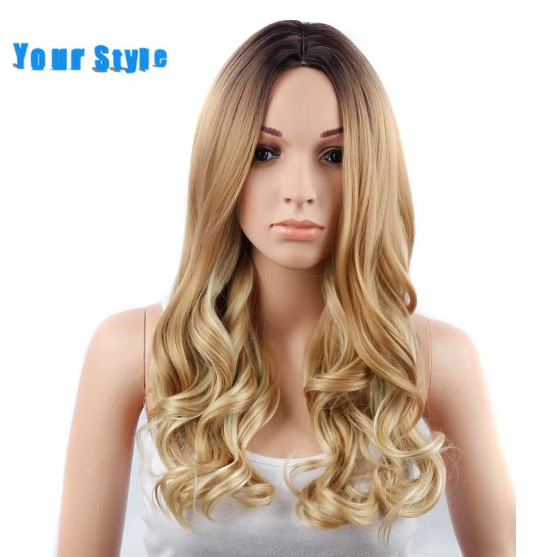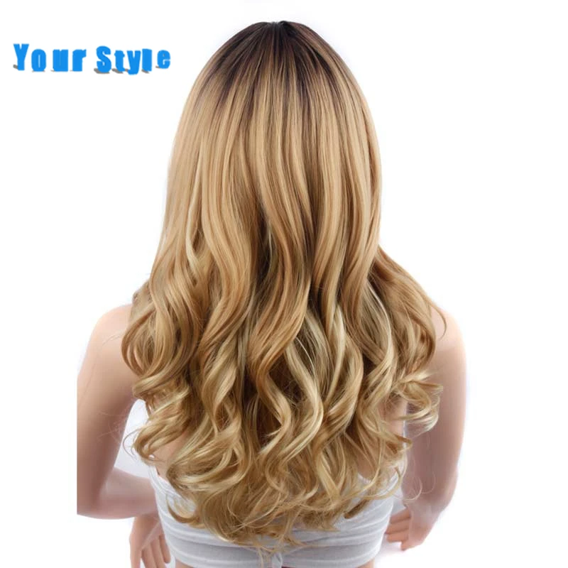 ORIGINAL Your Style Synthetic Long Wavy Cosplay Wigs Female Women High Temperature Fiber Ombre Gray Brown Co