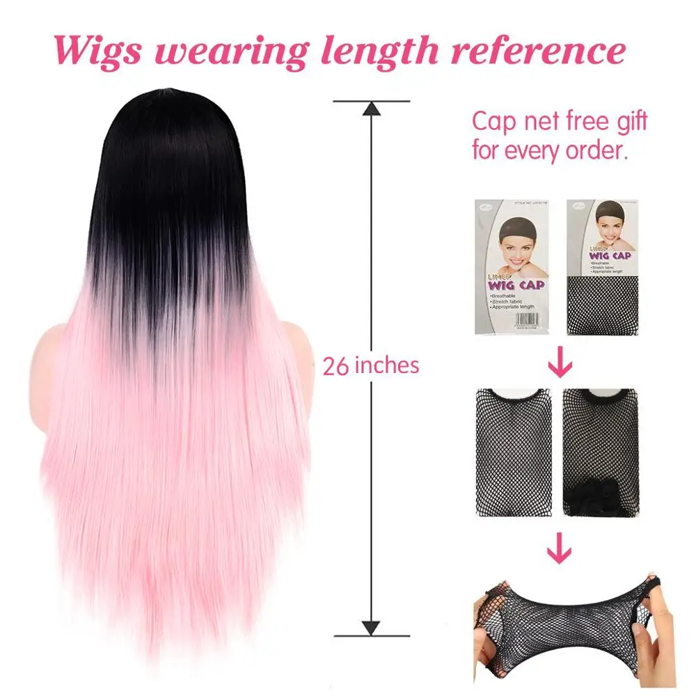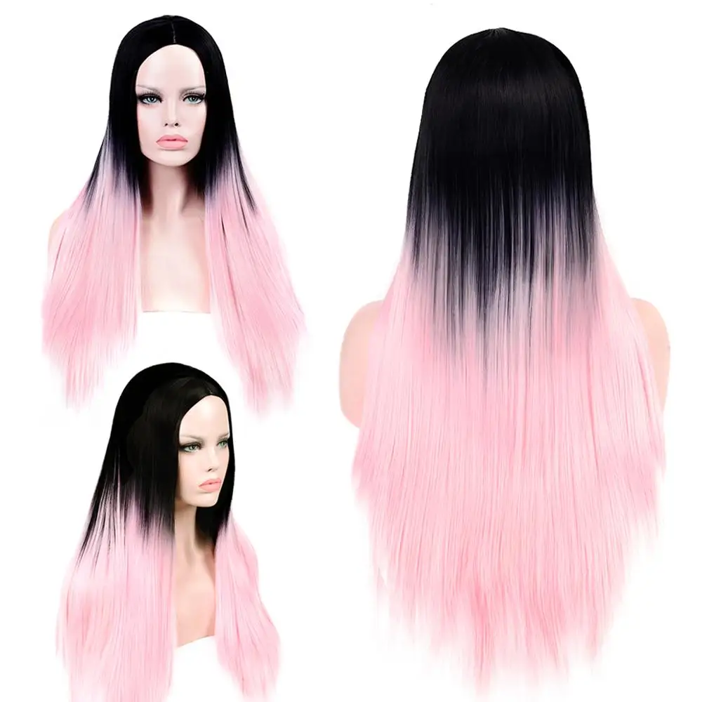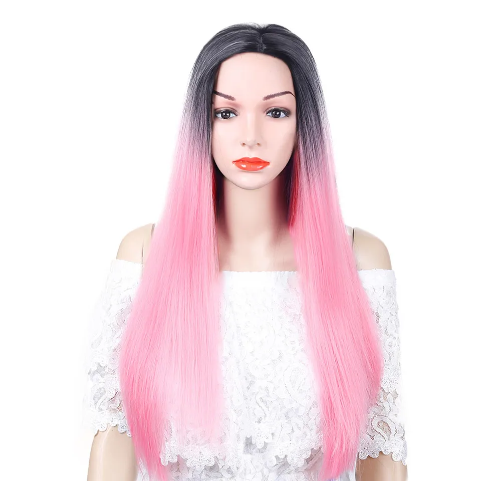 HIGH QUALITY Pageup 26 Inch Long Straight Heat Resistant Wig Ombre Honey Blonde Synthetic Hair Wigs Pink Purple