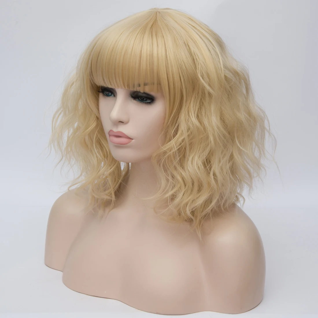 Similler Ombre Short Wig With Bangs For Women Anime Cosplay Wig Synthetic Curly Hair Heat Resistant