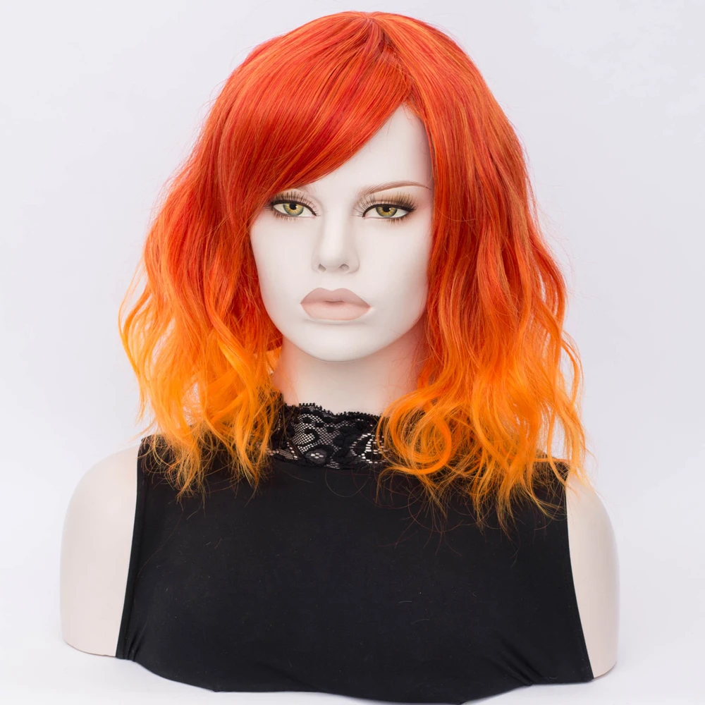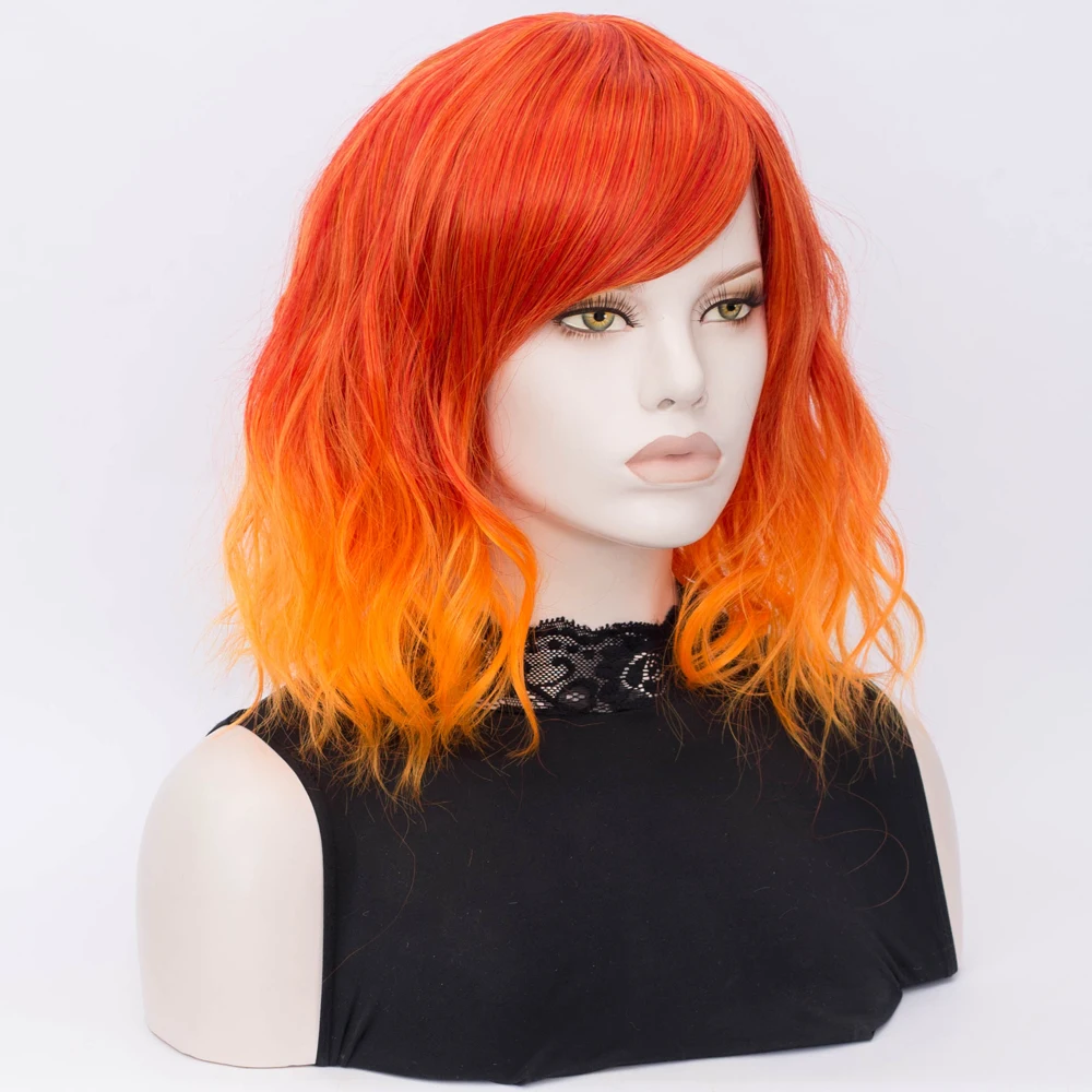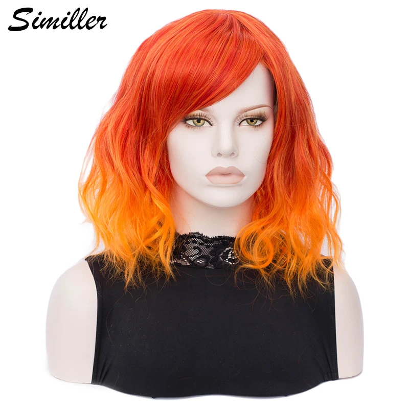 HIGH QUALITY Similler Short Women Synthetic Wigs with Bangs Orange Root Ombre Hair Heat Resistance Short Wig for